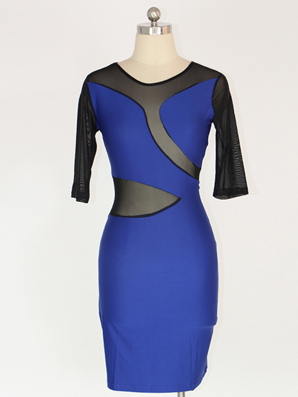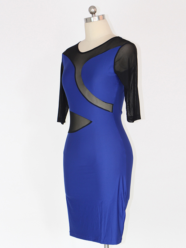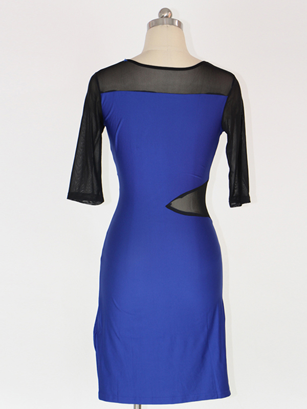 Mesh Split Fashion Midi Dress Blue