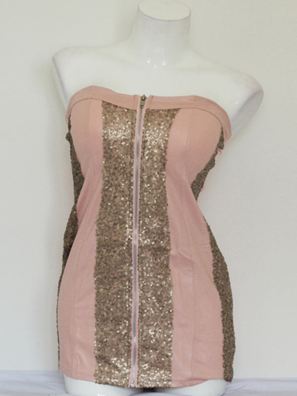 Home » US$ 0.50-US$ 0.99 » 30% Discount » Shining Gold Sequin Strapless Clubwear Dress Pink
