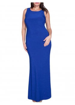 2XL-3XL Blue Cascading Ruffle Reversible Tank Maxi Dress