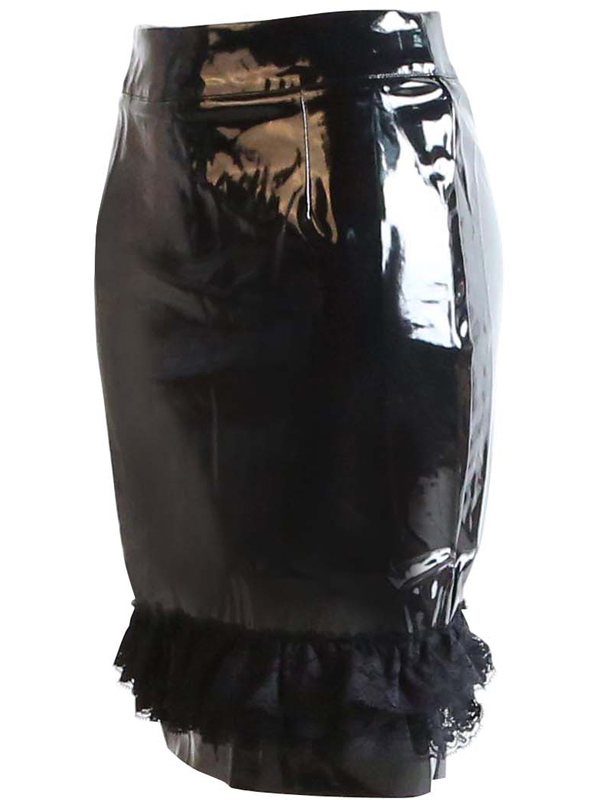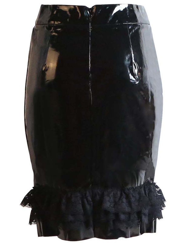 Black Wetlook High Waist Skirt