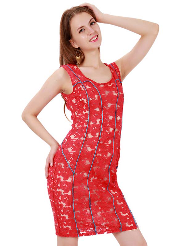Elegant Red Lace Party Dress