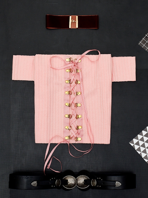 Home » Women Clothing » Tops » Crop Tops » Sexy Pink Cross Wrapped Women Blouse