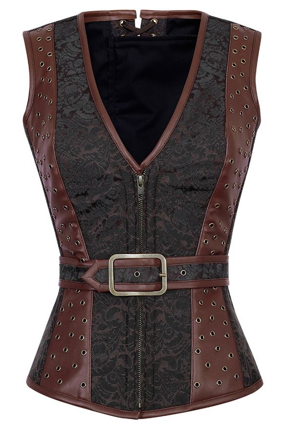 Home » Corset & Shapewear » Overbust Corset » Zipper V Neck Woman Leather Vintage Overbust Corset