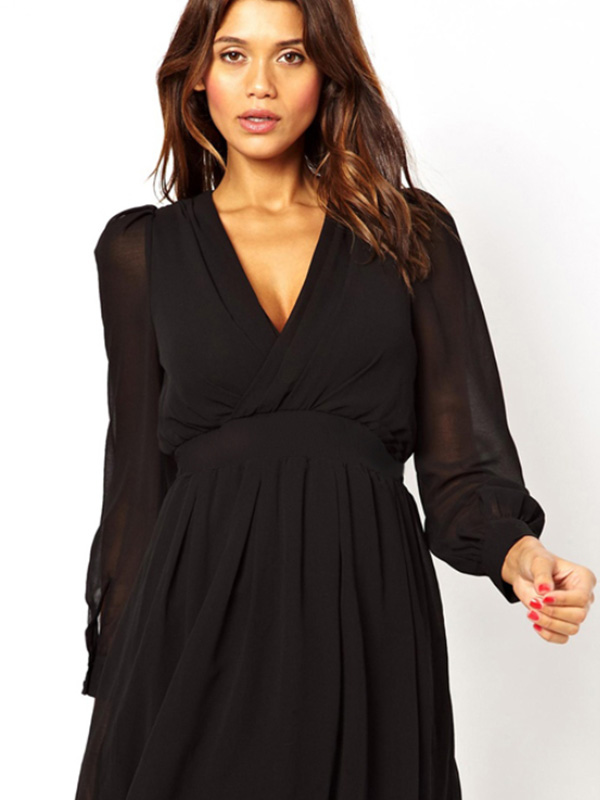 - Fashion Black V-Neck Mini Dress