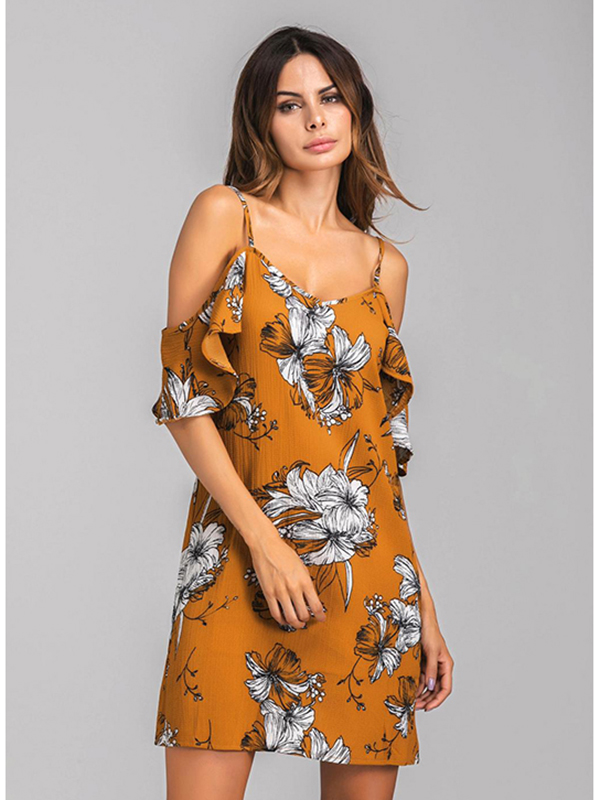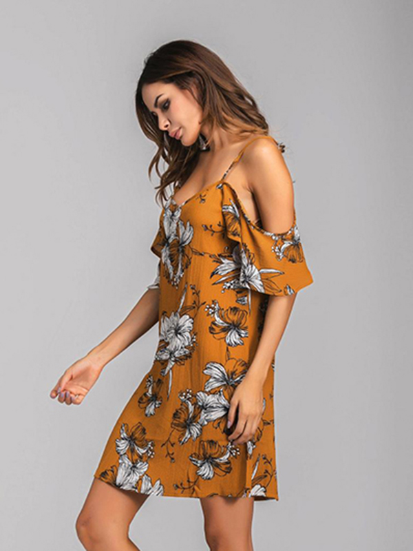 Home » Women's Dresses » Printing Dresses » Brown S-XL Flower Printed Mini Dress