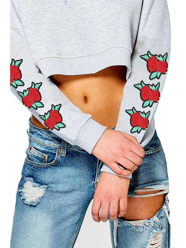 » Women Clothing » Outerwear » Sweatshirts & Hoodies » 2 Colors S-XL Faddish Flower Embroidery Sweatshit&HoodiesModel Show: