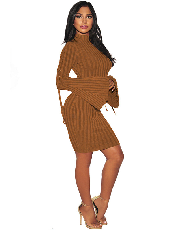 3 Colors S-3XL Lace-Up Wide Cuffs Sweater Dress
