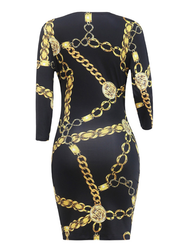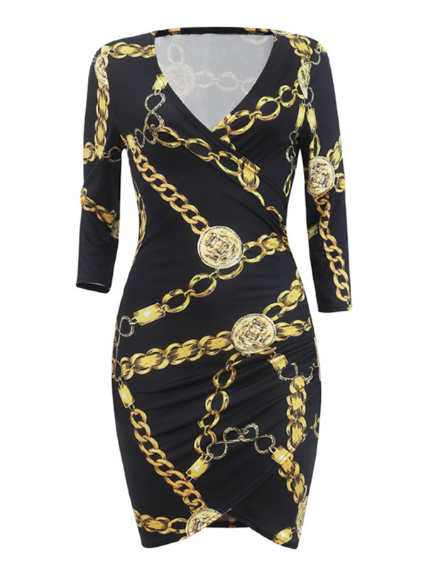 Sexy V Neck Chains Printed Mini Dress