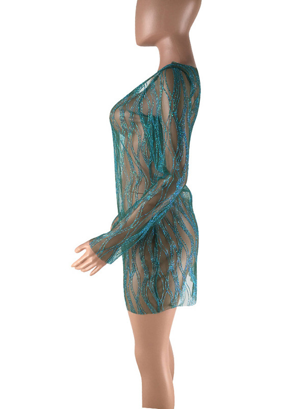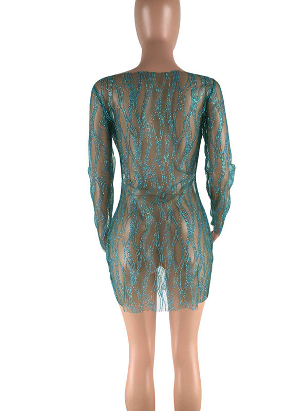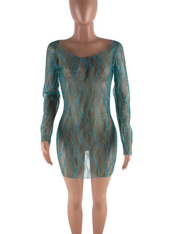 Home » Women's Dresses » Lace Dresses » Sexy Round Neck See-Through Sequins Lace Dress