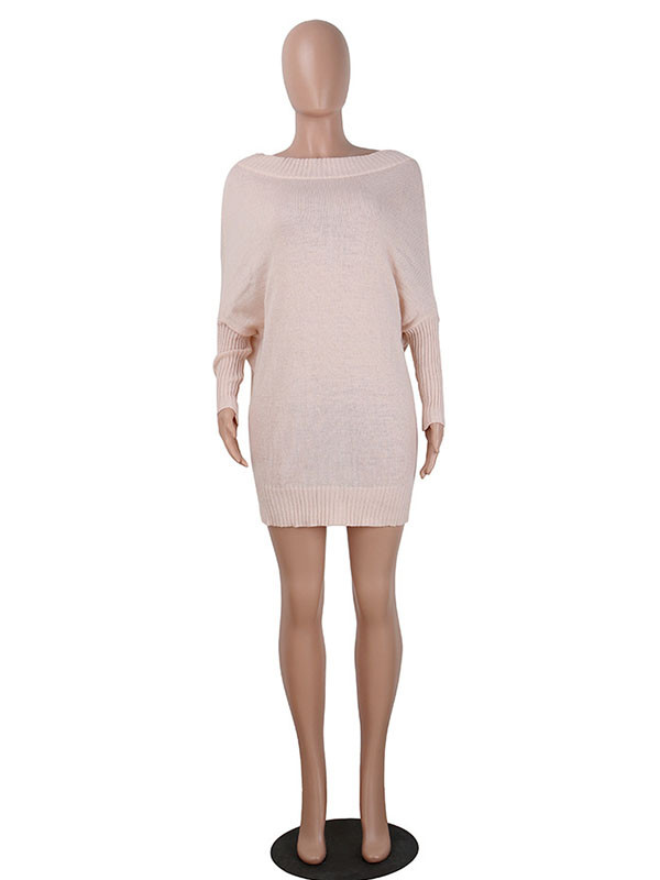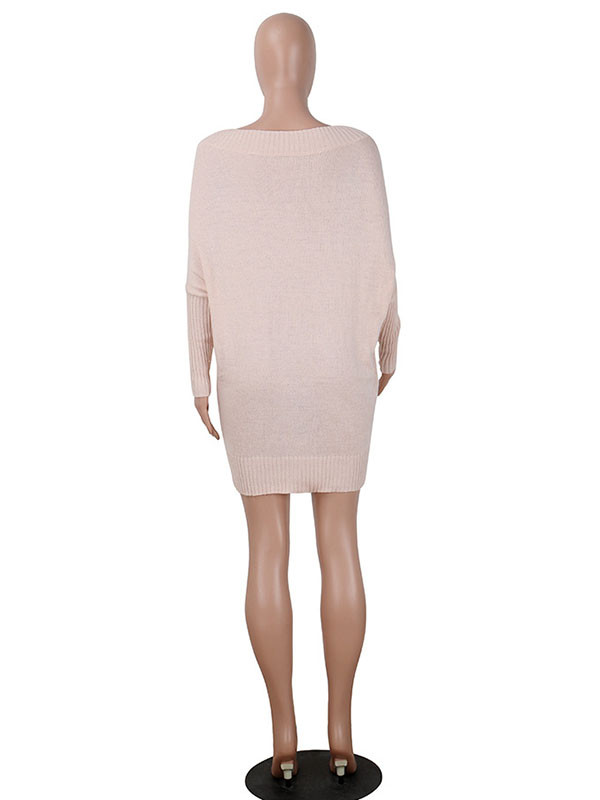 Home » Women's Dresses » Sweater Dresses » Pink Dew Shoulder Knitting Sweater Dress