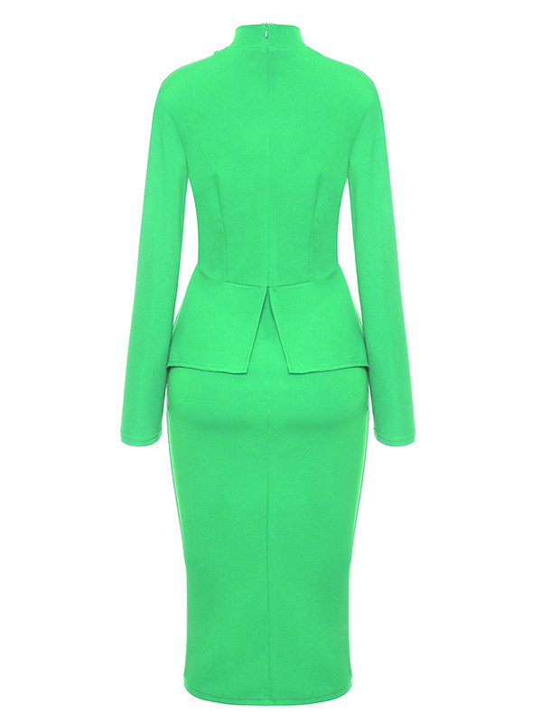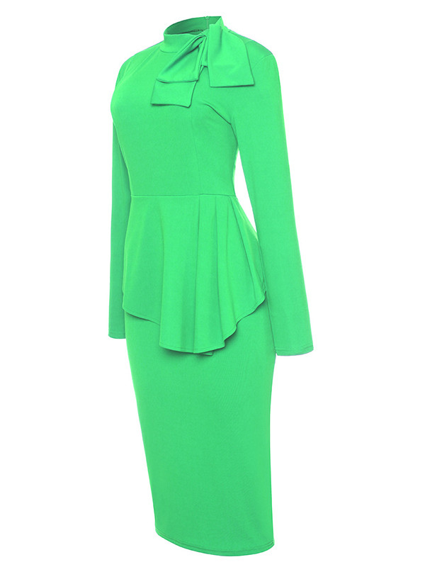 Home » Women's Dresses » Peplum Dresses » Green Round Neck Drape Collage Design Dress