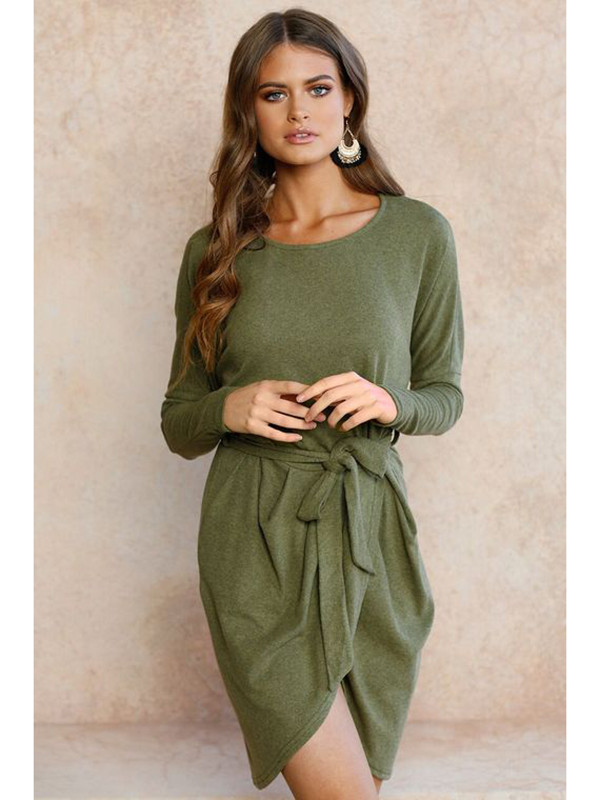 Home » Women's Dresses » Sweater Dresses » Green Long Sleeves Asymmetrical Sweater Dress