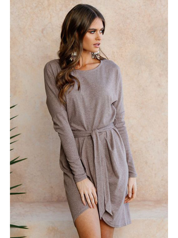 Home » Women's Dresses » Sweater Dresses » Brown Long Sleeves Asymmetrical Sweater Dress