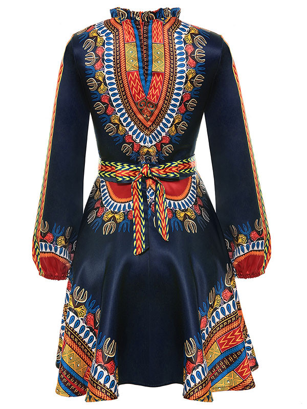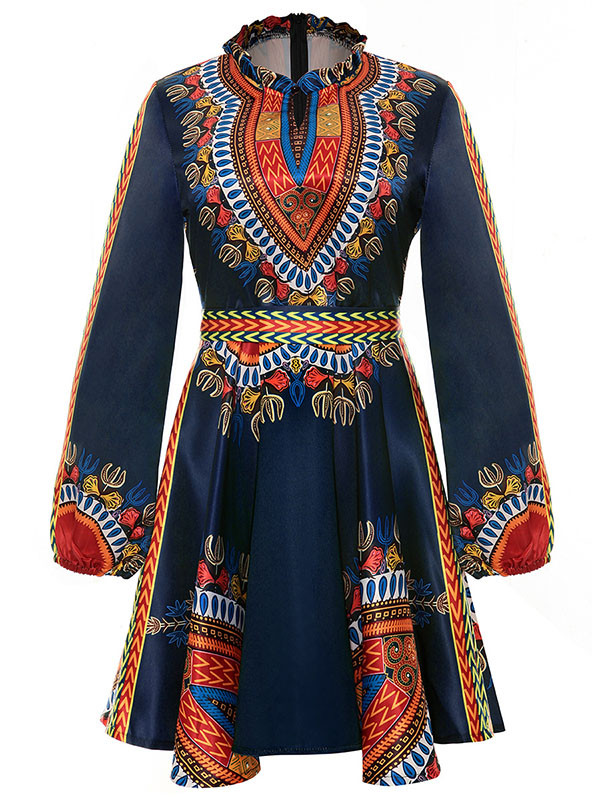 » Women's Dresses » Printing Dresses » Ethnic Style Long Sleeves Totem Printed Black Mini DressModel Show: