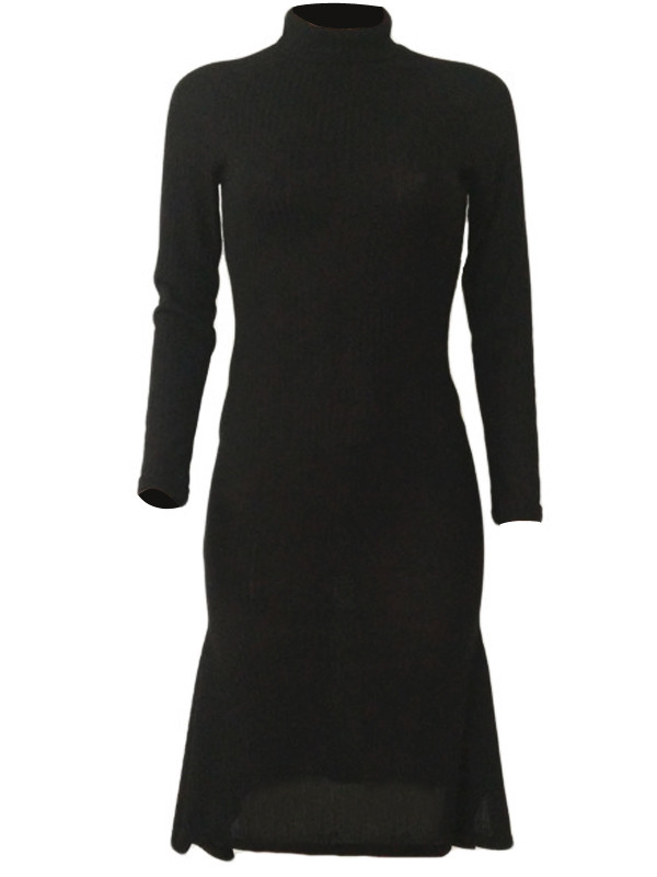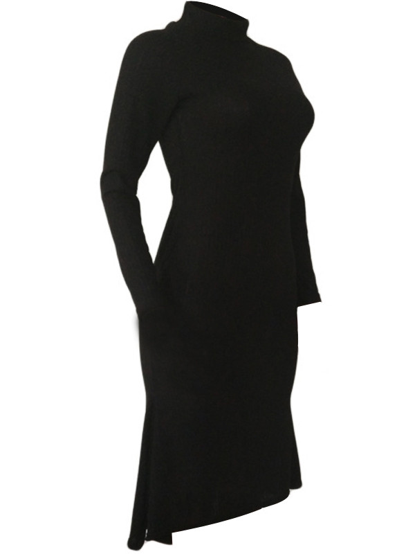 Home » Women's Dresses » Sweater Dresses » Black Trendy Turtleneck Asymmetrical Dress