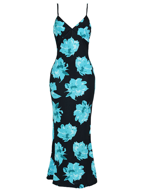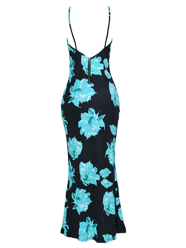 Green S-XXL Floral Print Sleeveless Long Dress