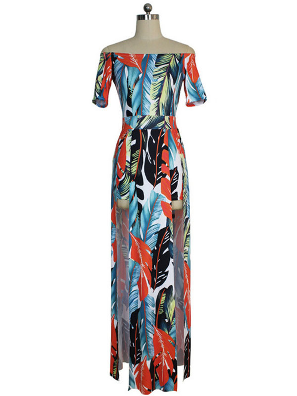Home » Women's Dresses » Bohemian Dresses » Orange S-XL Off Shoulder Side Split Dress