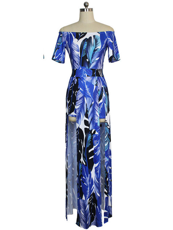 Home » Women's Dresses » Bohemian Dresses » Blue S-XL Off Shoulder Side Split Dress