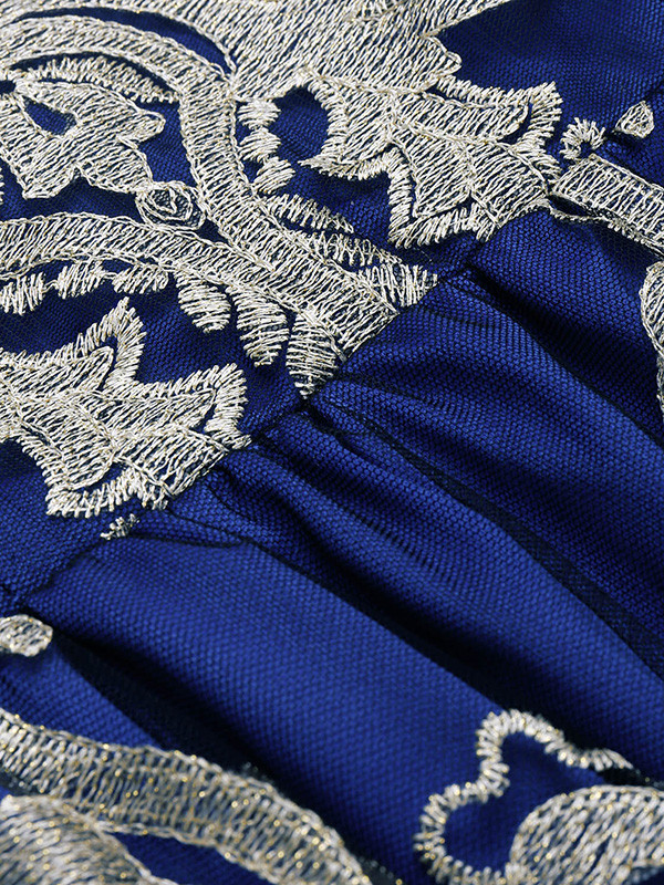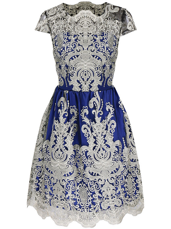 Blue S-XL Short Sleeve Printed Lace Dress
