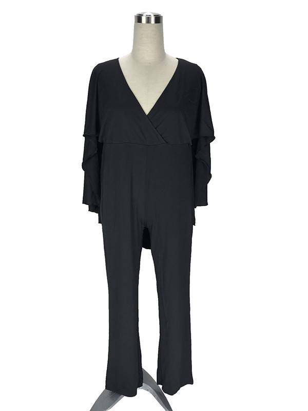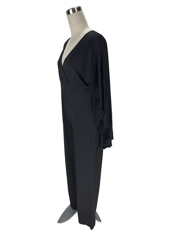 Home » Plus Size Clothing » Plus Size Jumpsuit » Black L-3XL Sexy V Neck Plus Size Jumpsuit