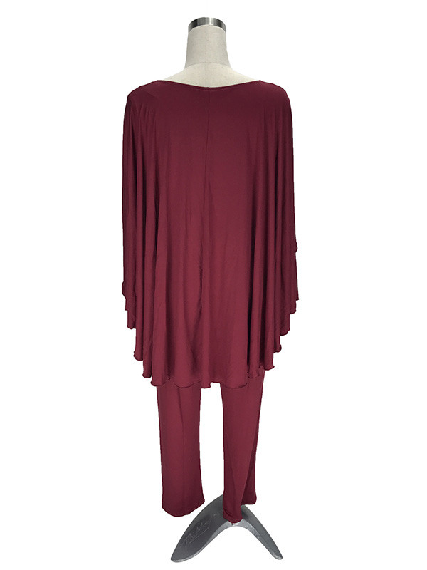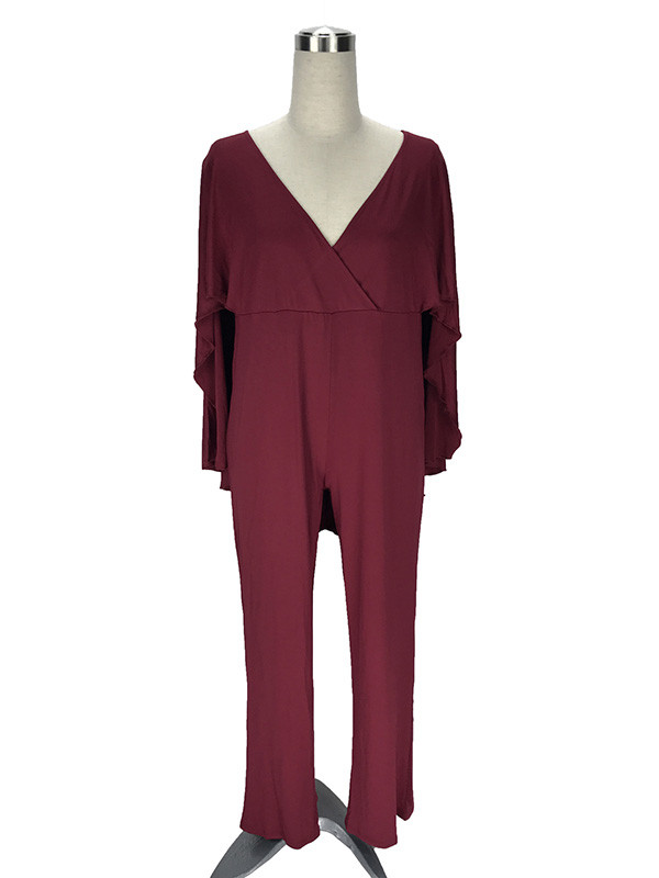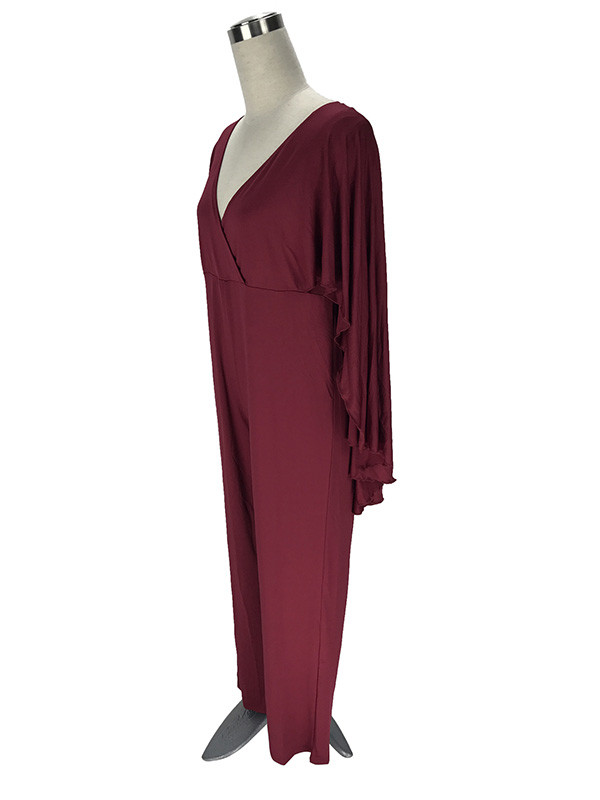 Wine Red L-3XL Sexy V Neck Plus Size Jumpsuit