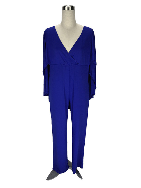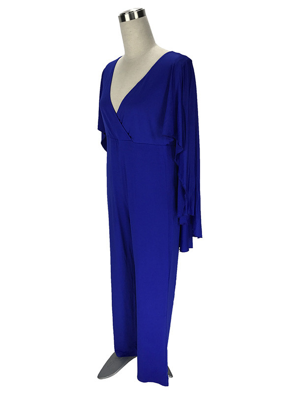 Home » Plus Size Clothing » Plus Size Jumpsuit » Blue L-3XL Sexy V Neck Plus Size Jumpsuit