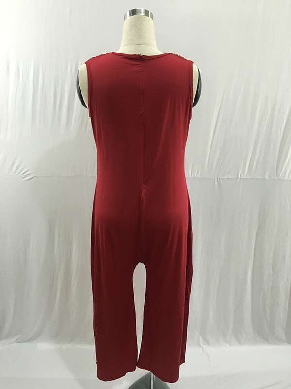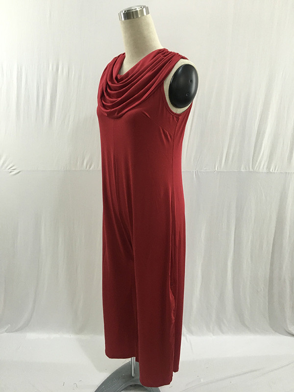 Home » Plus Size Clothing » Plus Size Jumpsuit » Red Heaps Collar Ruched Plus Size Jumpsuit