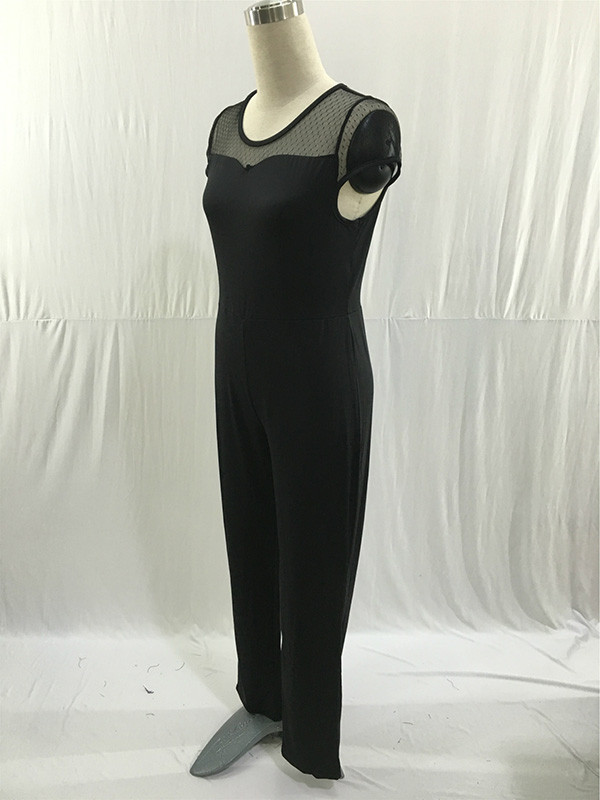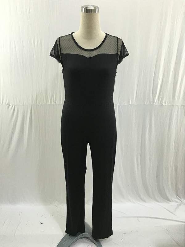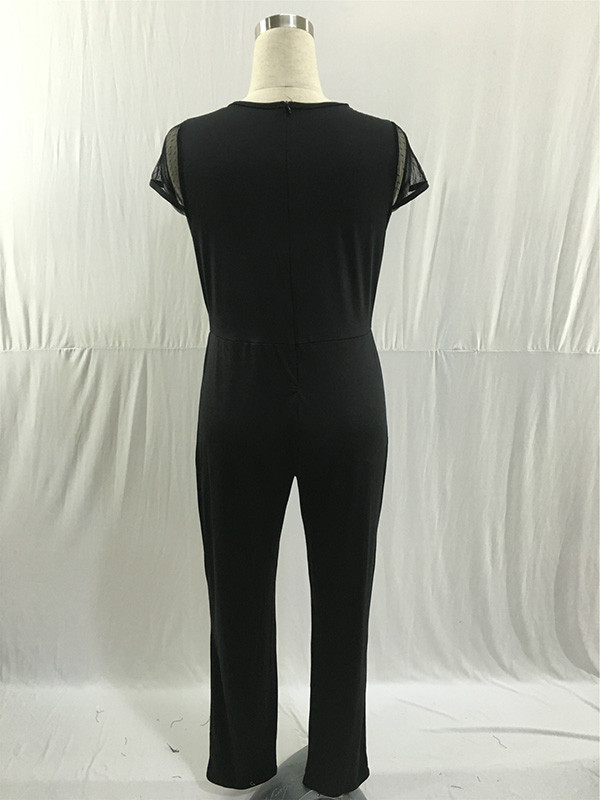 Home » Plus Size Clothing » Plus Size Jumpsuit » Black Mesh Short Sleeve Plus Size Jumpsuit