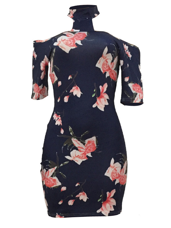 Home » Women's Dresses » Printing Dresses » Turtleneck Off The Shoulder Half Sleeve Mini Dresses