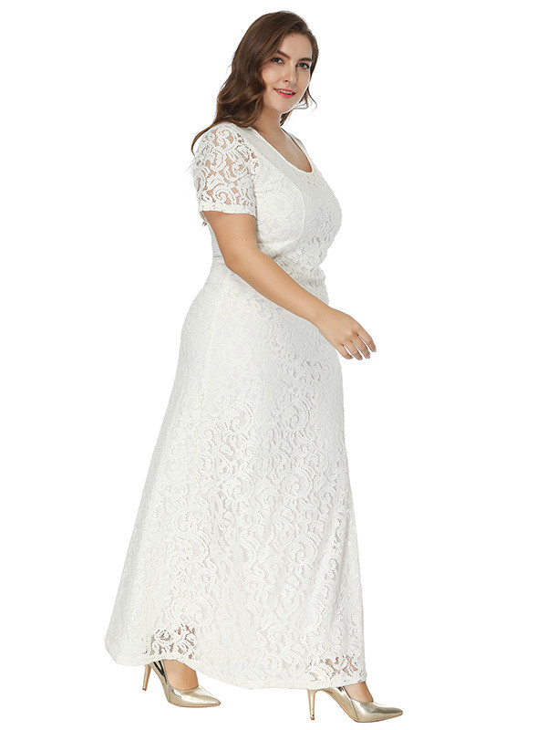 Home » Plus Size Clothing » Plus Size Dresses » White Floral Printed Chiffon Plus Size Dress
