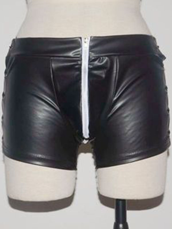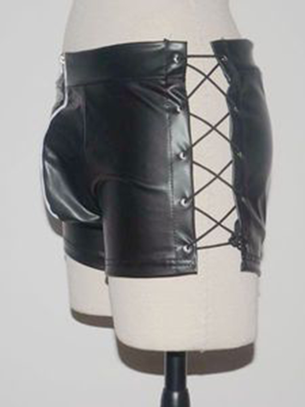 Home » Wet Look & Vinyl Clothing » Men Vinyl Clothing » Sexy Men Leather Shorts Exotic Lingerie Lace-up Zipper Design Underpants