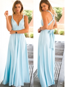 Home » Women's Dresses » Evening Dresses » Light Blue Sleeveless Backless V-Neck Maxi Evening Dress