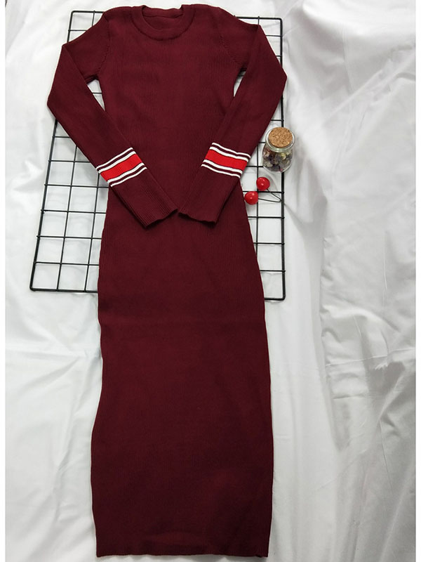 Home » Women's Dresses » Sweater Dresses » Women Elegant Long Sleeve Mid Calf Dress Red
