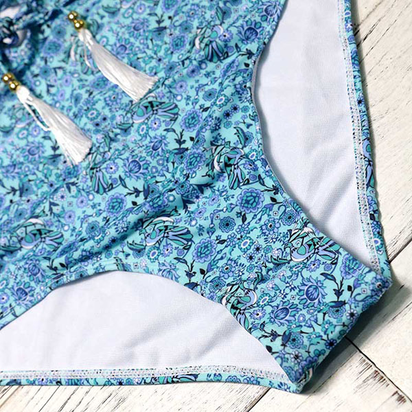 Home » Swimwear » One-Piece Swimwear » Blue V-Neck One Piece Swimwear