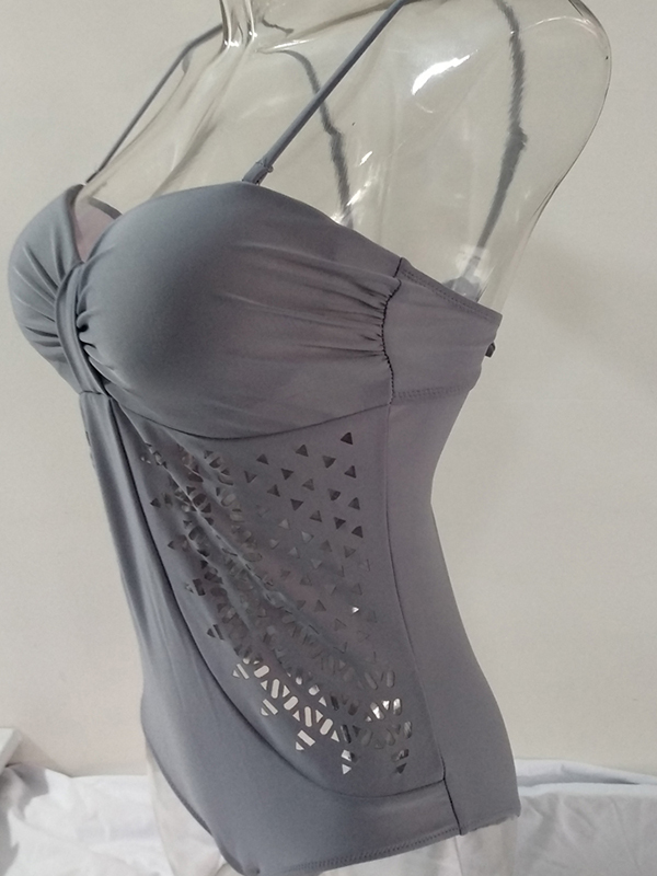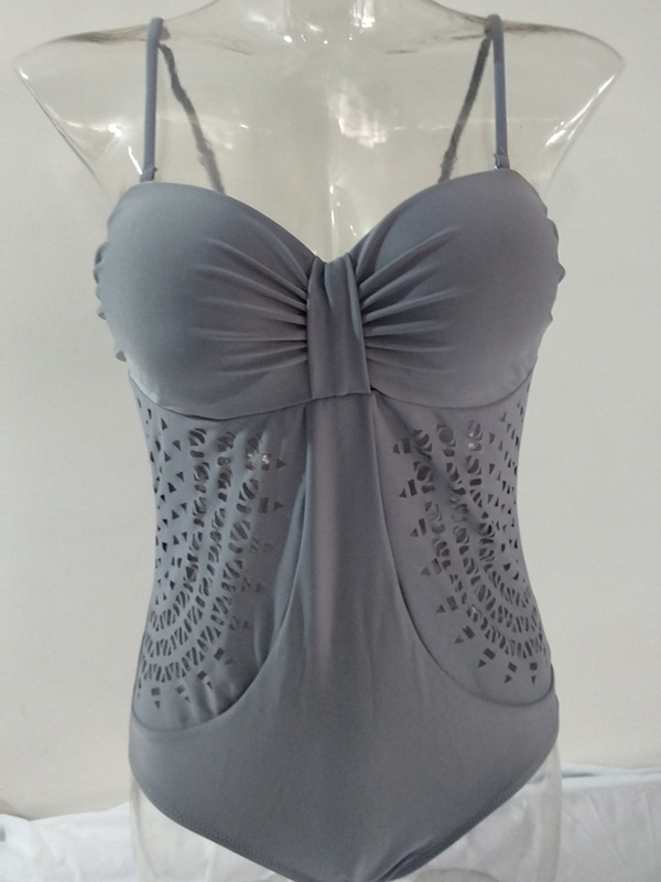 Women Sexy One Piece Hollow Out Monokini Swimwear Gray