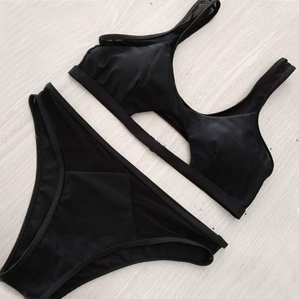 Home » Swimwear » Tankini » Black Sexy Mesh Patchwork Swimsuit Set for Women
