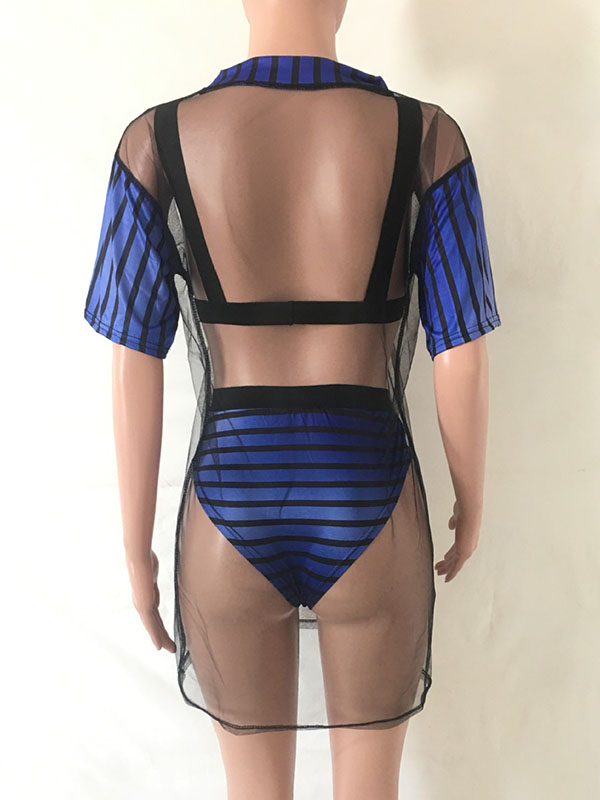 Women Sexy See-through Mesh Mini Dress Blue