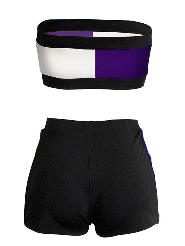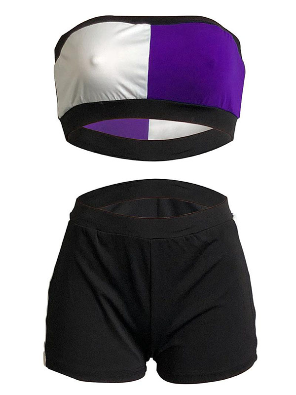 Chic Purple Color Block Patchwork Cotton Tank Top