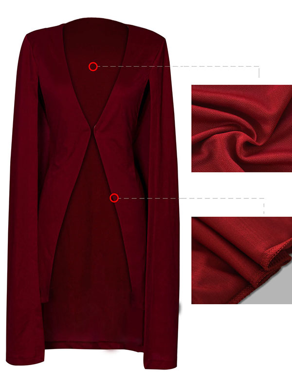» Women Clothing » Outerwear » Jackets & Coats » Office Lady Wine Red Cloak Cape Long Blazer Coat Model Show: