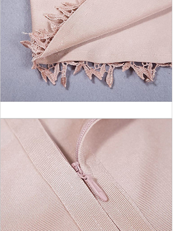 Home » Bandage Dresses » Elegant Solid Lace Bandage Dress Apricot