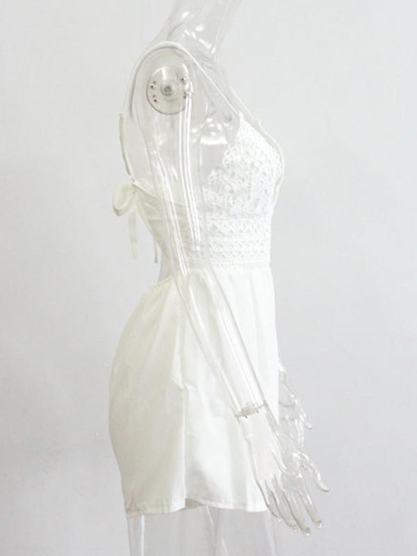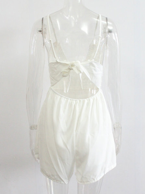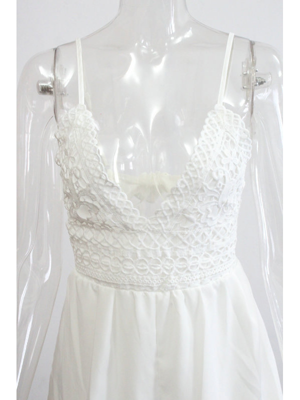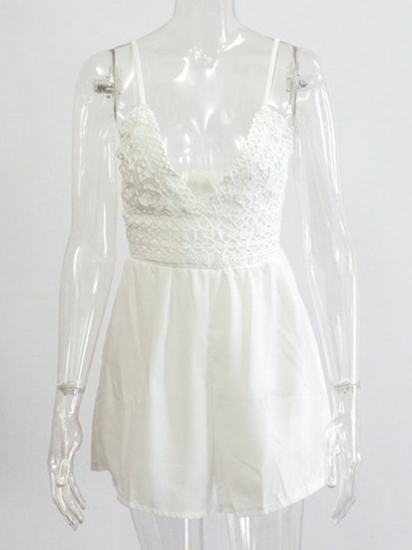 Home » Jumpsuit & Romper » Romper » Floral Print Spaghetti Strips Lace Rompers White