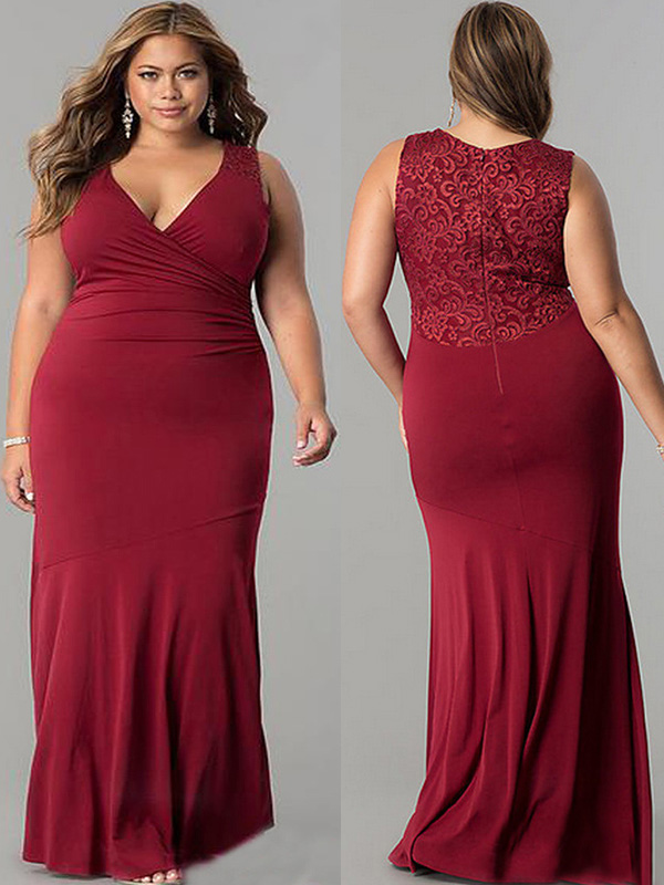 Home » Plus Size Clothing » Plus Size Dresses » XL-5XL Plus Size Women V-Neck Dress