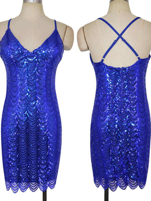Home » Women's Dresses » Sequin Dresses » Spaghetti Strap Deep-V Sequin Dresses Blue