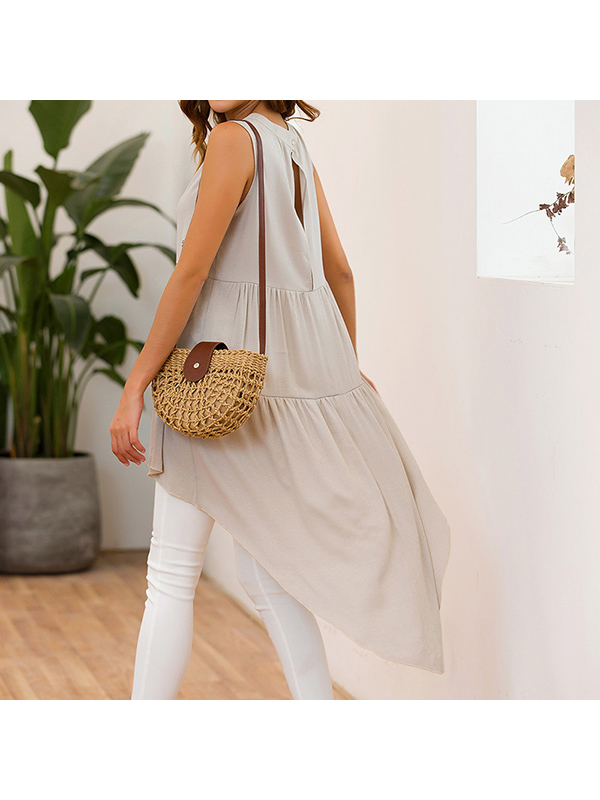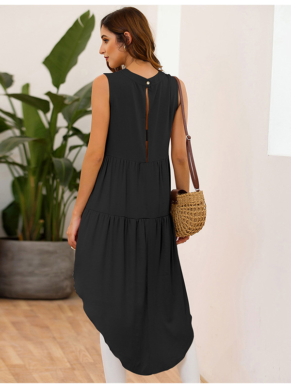 » Women Clothing » Tops » Tank Tops » Black Beige High-Low Hem Sleeveless Bohemia Tunic Top For Women