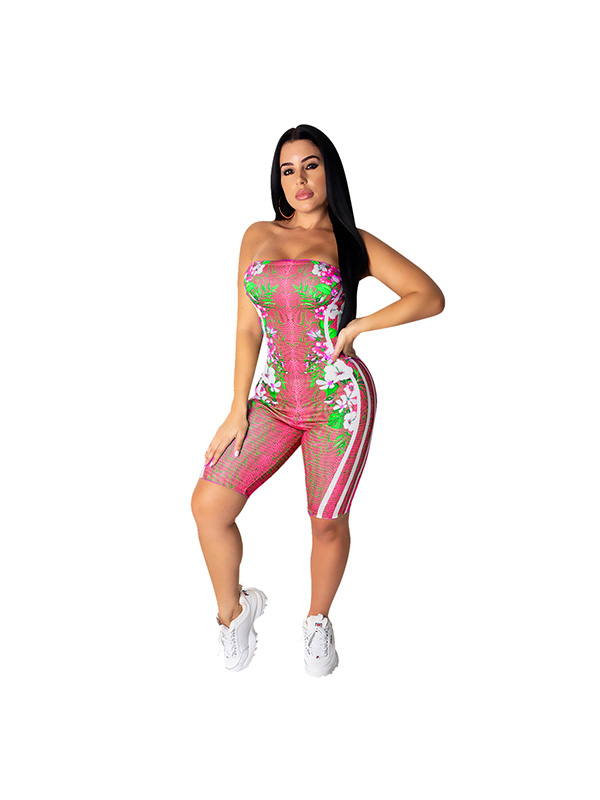 Home » Jumpsuit & Romper » Romper » Wonderful Flower Print Open Back Romper Bandeau Leisure Time