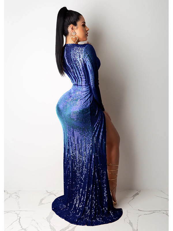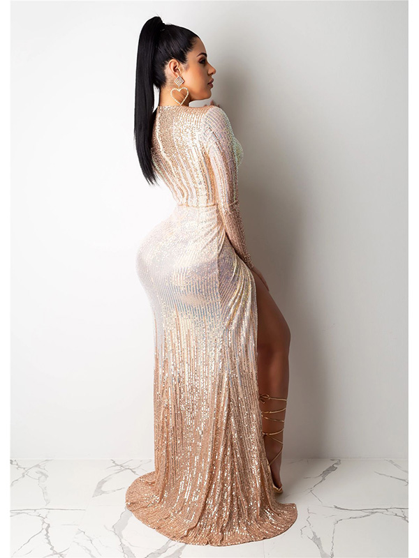 - Women Sexy Long Sleeve Evening Dress