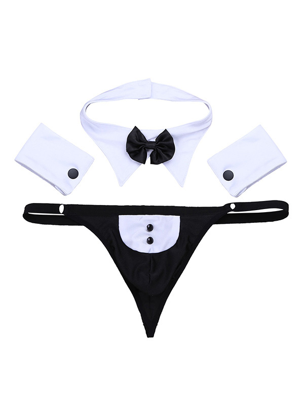 » Wet Look & Vinyl Clothing » Men Vinyl Clothing » Mens Male Waiter Lingerie Sexy Clubwear Bowknot Open Back Tuxedo Gay Sexy String Homme Underwear with Bow Tie Collar Bra