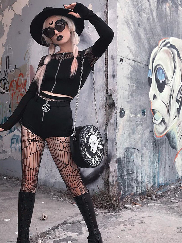 Women Gothic Summer Long Sleeve Cropped Tops