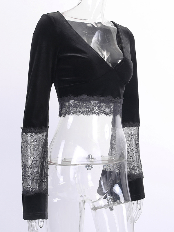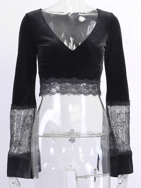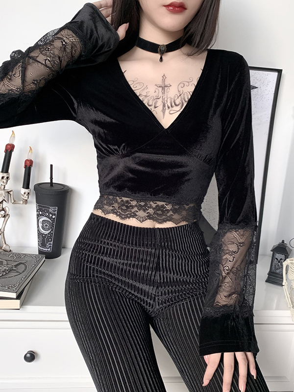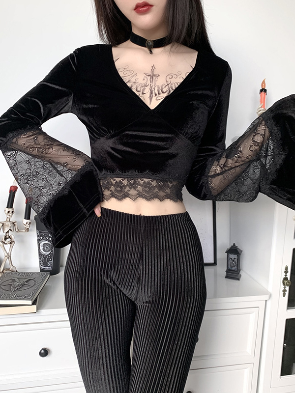Home » Wet Look & Vinyl Clothing » Steampunk Series » Women Gothic Summer Long Sleeve Cropped Tops