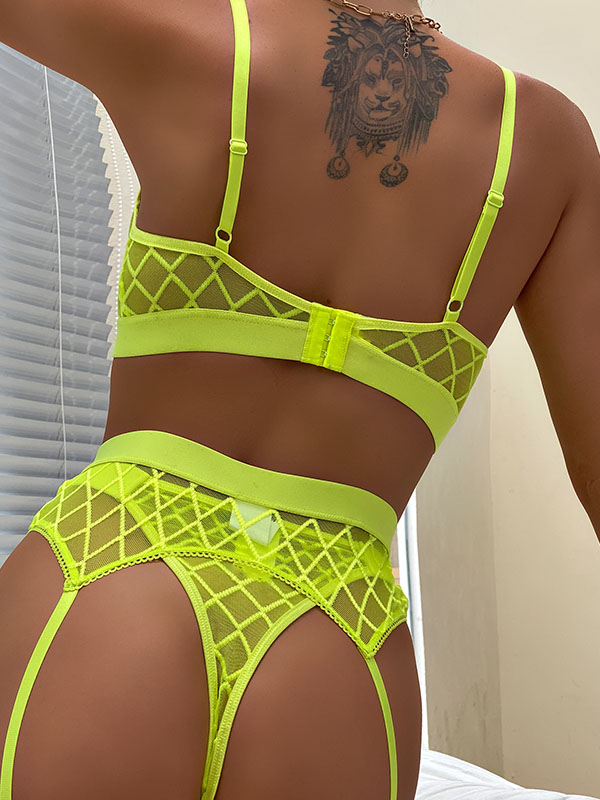 Women 3 Piece Bra Garter Panty Lingerie Set